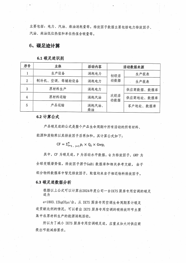 2024年度iK7S廚房專用空調產品碳足跡報告